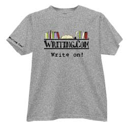 This short sleeve, 100% preshrunk, heavyweight cotton t-shirt is very comfortable to wear. The full color Writing.Com logo and "Write On!" tagline are printed on the front. The Writing.Com URL is printed on one sleeve in black. Only size SMALL left.